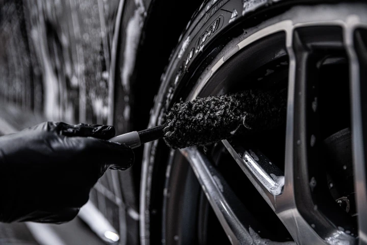 ホイールはタイヤの次に路面に近く、走行中は常に高温な状態となります。 当然ブレーキダストも非常に高温になるため、ブレーキダストによるダメージからホイールを保護するためにホイールコーティングは必要不可欠です。 また、ホイールコーティングの撥水性のおかげで汚れが付着しにくく固着するのを防いで洗車時に落としやすくします。